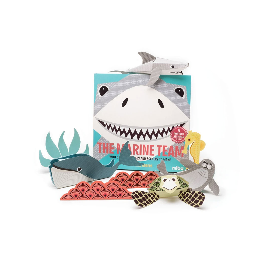 The marine team book comes with 5 paper 3D animals and scenery to make!
