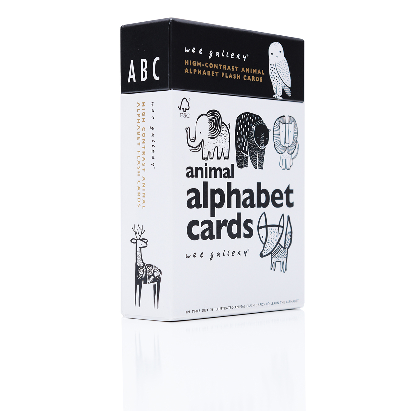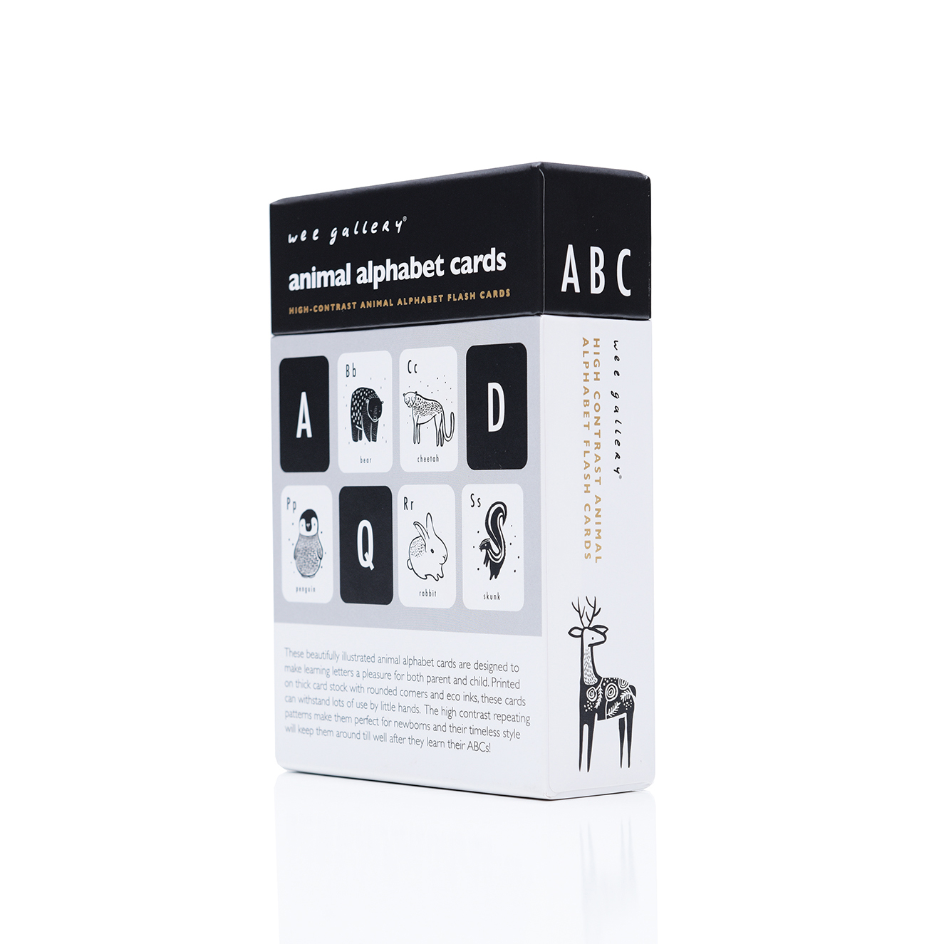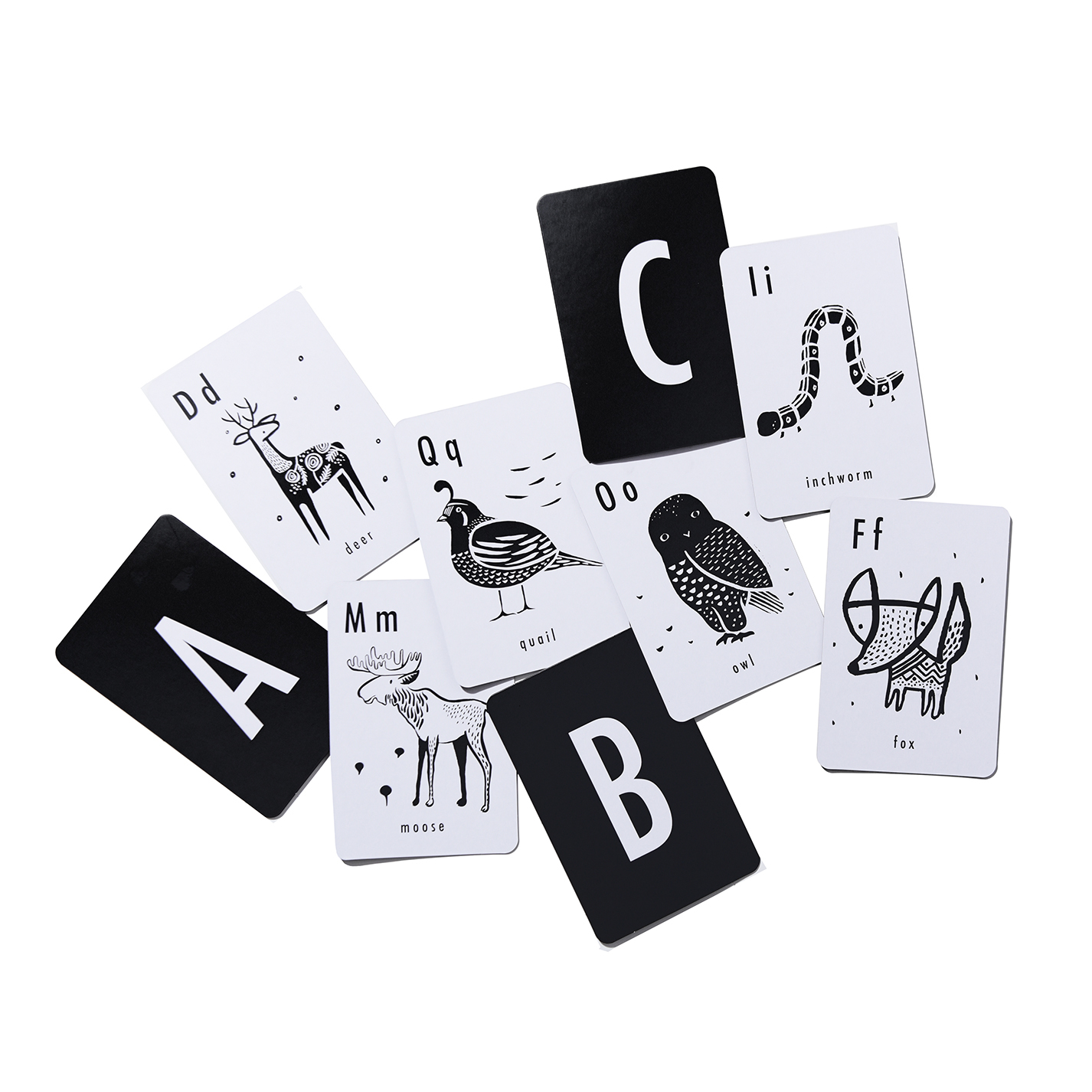 The alphabet cards are a beautifully illustrated set of 26 cards, to make learning letters a pleasure for both parents and child. The high contrast repeating patterns make them perfect for newborns and their timeless style will keep them around till after they learn their ABC’s. Printed on thick card stockwith rounded corners, and eco inks, these flash cards are tough and can withstand lots of use by little hands!