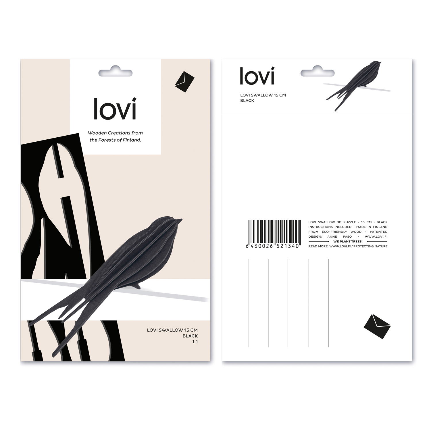 This beautiful black swallow is made of high quality birch plywood cut-outs – a new Finnish concept by Anne Paso for Lovi, ethically and ecologically sustainable. Packaged as a postacrd ready to send, it contains pre-cut pieces and instructions. A beautiful unusual and original gift to send to someone special!