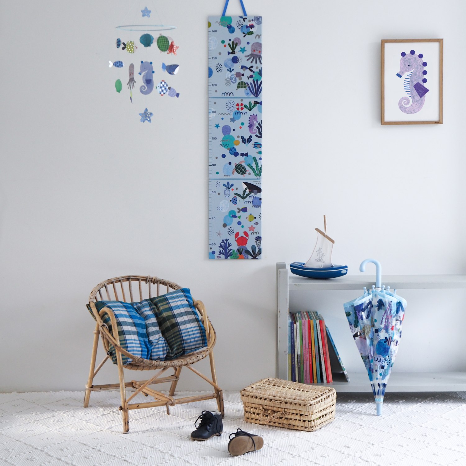 A large sea-themed wall chart with lots of reusable stickers. A beautiful addition to any room and ideal for measuring children as they grow (up to 1.4 m). Once they are all grown up, it makes a lovely keepsake tucked away in its pretty box.
