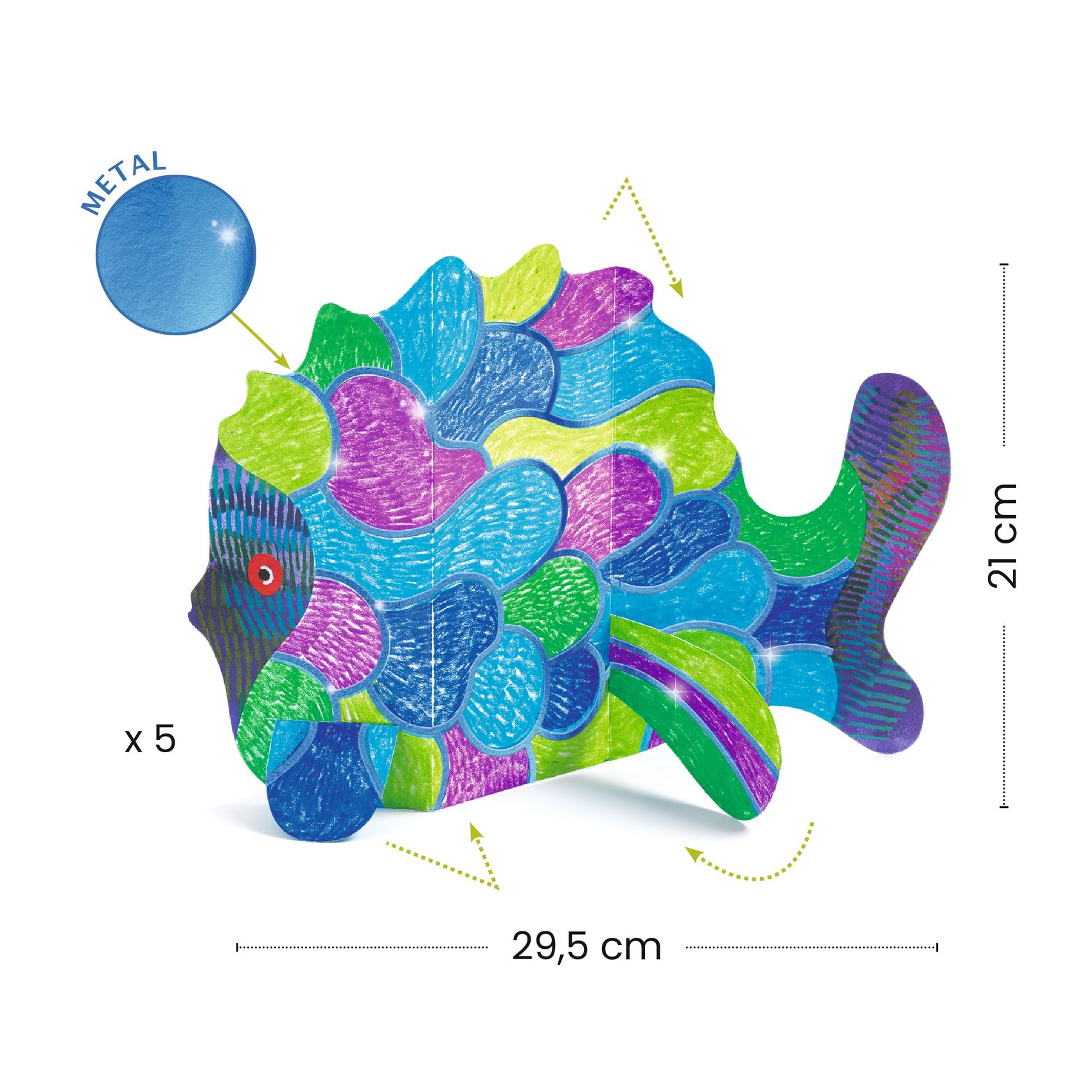 A colouring set to create a wonderful ocean world with metallic details! First, colour them in, then fold and assemble the pieces. An ocean world appears and shines with its metallic details.
