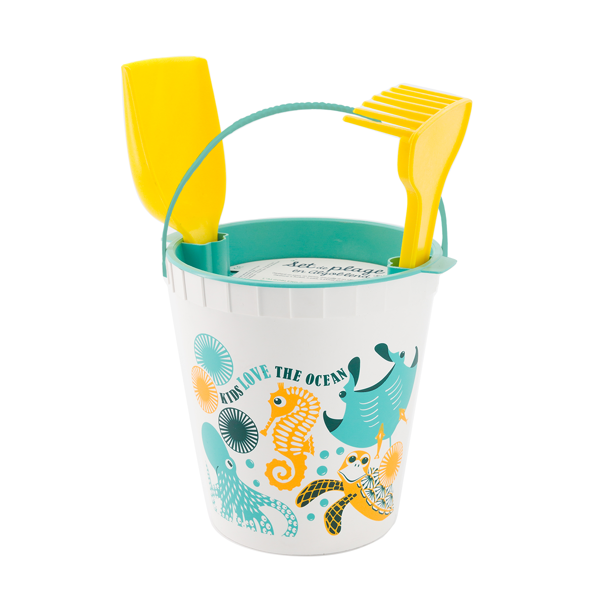 Lovely Eco-friendly beach set, made from eco-friendly Algoblend® in France. Algoblend® is a new generation of bioplastic, a BPA free material produced using seaweeds. A great alternative to everyday plastic.