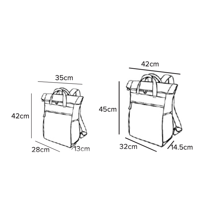 • Large: 45 x 32 x 14.5 cm, 20 L