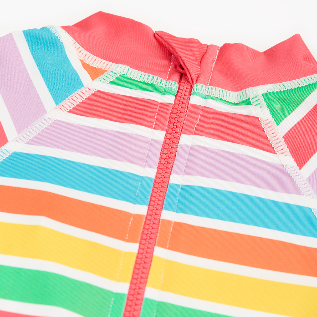 Sun-safe suit, passes British Sun-safe standards UPF 40+. UPF 50+ stretch fabric made with Recycled Polyester from post-consumer recycled plastic. Chlorine safe colours and Prints. Features full zip fastening with zip guard.