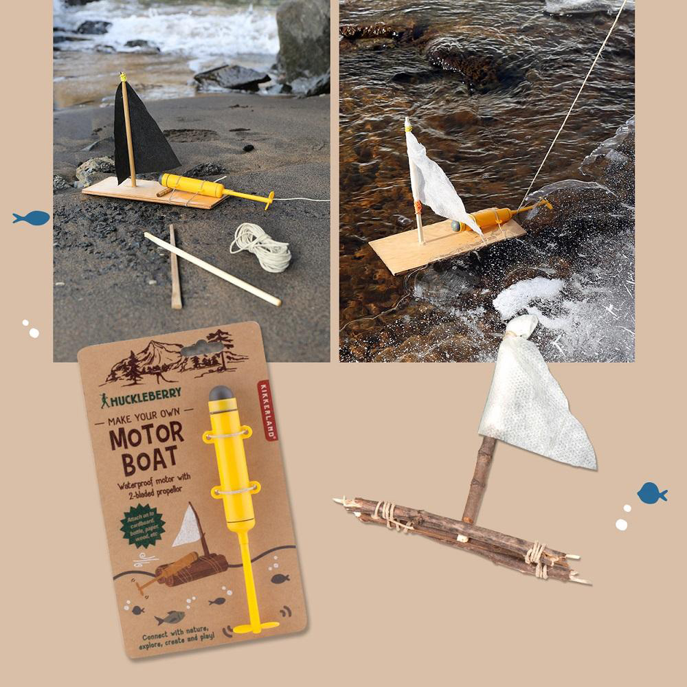 Build your own motor boat out of a small piece of wood, a bottle or a strong paper plane. Attach the waterproof motor to the boat and place it into water. Press the button on the top and watch it set sail!