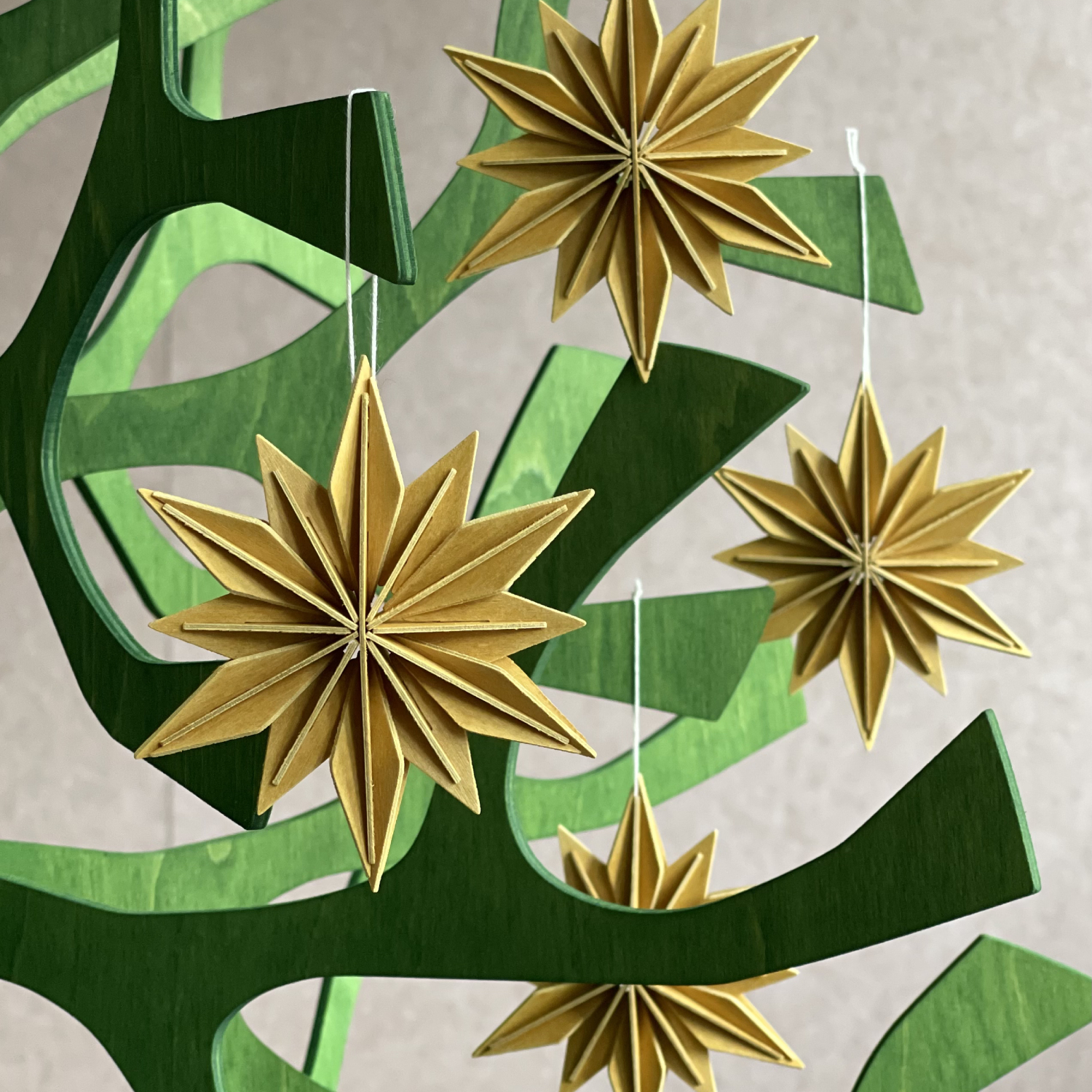 The kit of 4 Lovi Decor Stars 10cm is a delightful set of wooden Christmas ornaments, perfect for adding warmth and natural details to your seasonal décor. Hang them as delicate ornaments on your Christmas tree, use them as tree toppers for smaller trees, or place them as gentle accents around your holiday setting. These natural wooden stars bring a soft glow to both traditional and modern Christmas interiors.