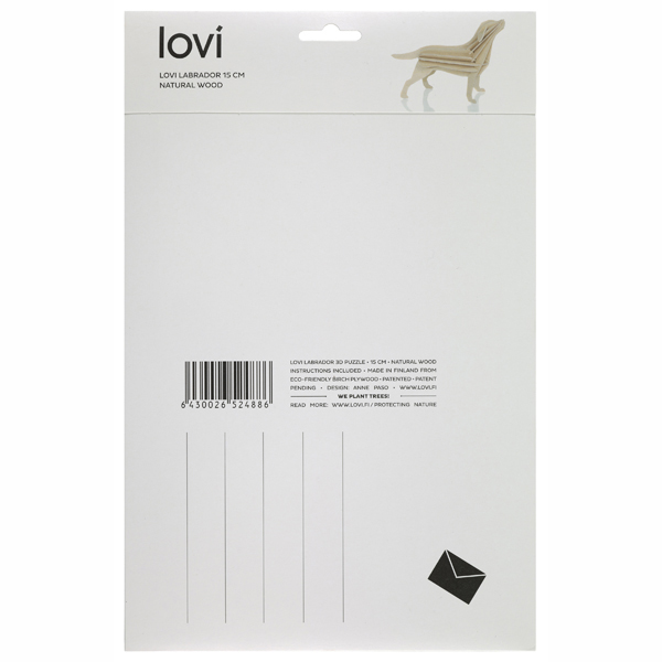This beautiful labrador is a 3D wooden model, with pre-cut pieces to slot easily together! Flat-packed in a paper envelope, ready to send, this dog will make a Yappy Present!