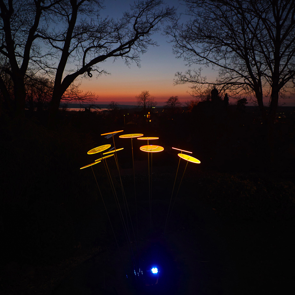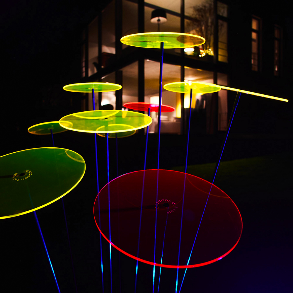 Luz Solar is the perfect outdoor accessory to illuminate your sun catchers at night! Solar powered, it will make the discs glow in the dark, as they do in daylight!