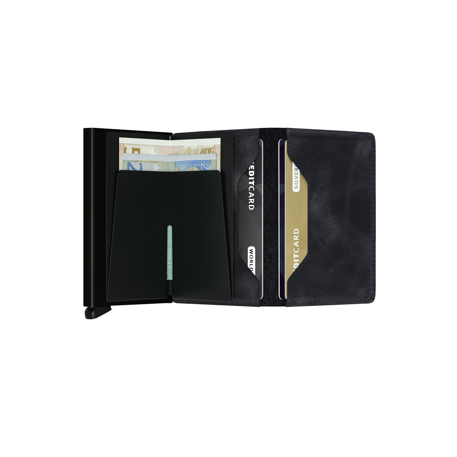 Slide out your cards with one simple motion, thanks to Secrid’s patented mechanism.