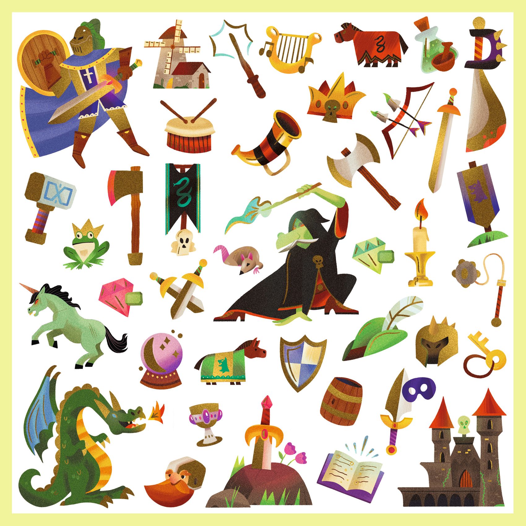 Immerse yourself in the medieval fantasy as you arrange these metallic stickers to craft your very own magical scenes. Each sticker gleams with a metallic finish, adding an extra touch of enchantment to every creation. The sustainably sourced paper and card used in this set reflect Djeco’s commitment to both creativity and environmental responsibility.