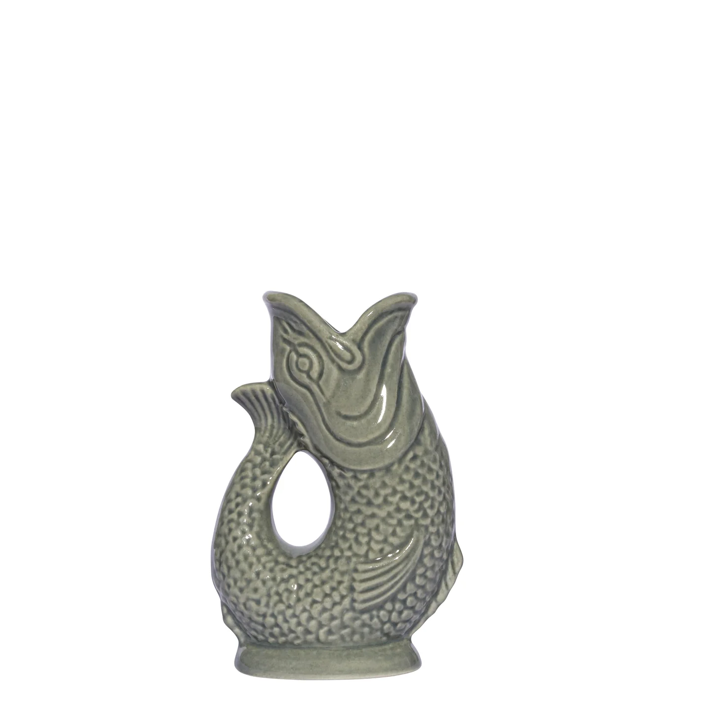 The British gluggle jug is an iconic British fish pitcher vase that makes a ‘ glugg glugg ‘ sound when pouring. This beautiful ceramic piece is handmade in England, and has been a cult British object for 150 years.