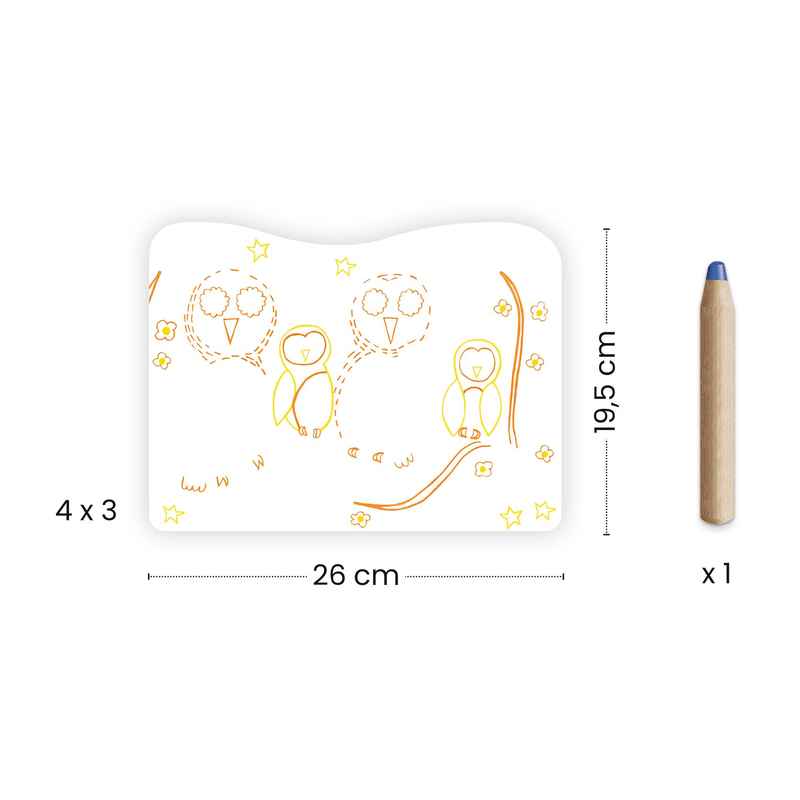 A pocket with 12 pictures to be coloured in using a jumbo coloured pencil, perfect for little ones. Colour in the animal families using the pencil to reveal what’s hidden. It’s magic: the pencil only marks certain areas, uncovering patterns and revealing surprises!